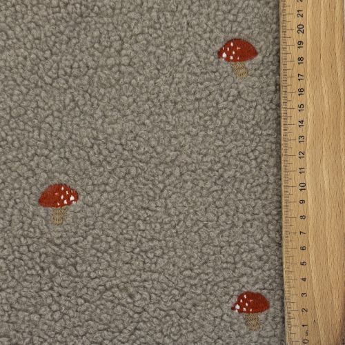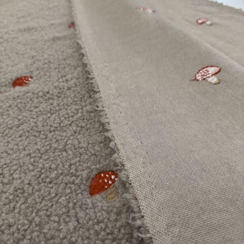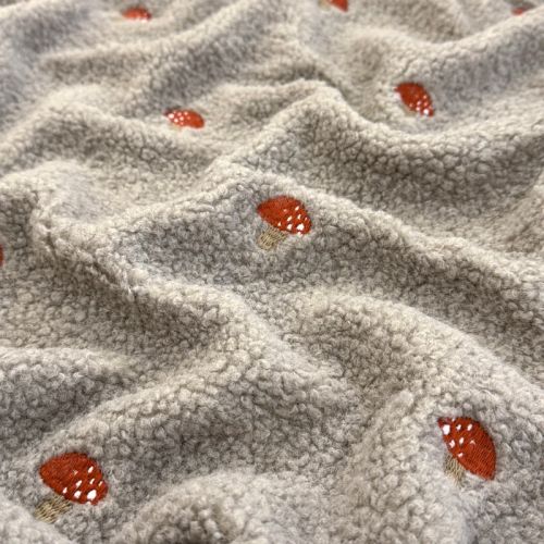Coat fabric EMBROIDERY Little mushrooms pebble