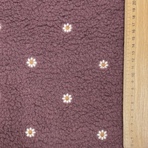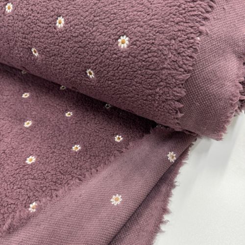 Coat fabric TEDDY EMBROIDERY Mini rosewood