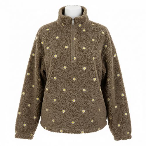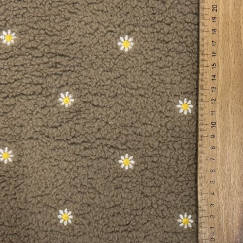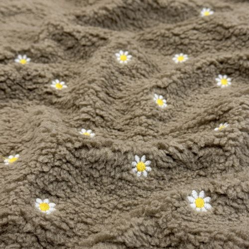 Coat fabric TEDDY EMBROIDERY Mini taupe