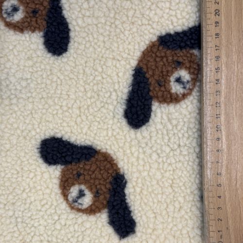 Coat fabric TEDDY JACQUARD Dogs brown