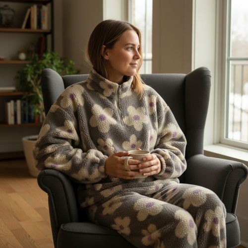 Coat fabric TEDDY JACQUARD Flowers taupe/beige