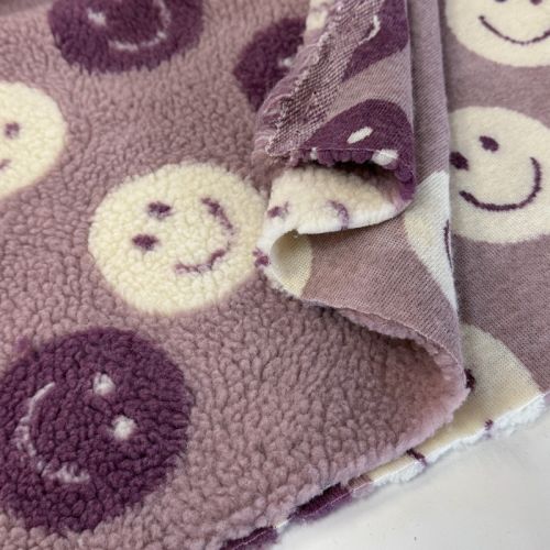 Coat fabric TEDDY JACQUARD Happy faces mauve