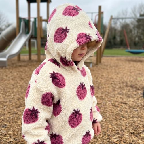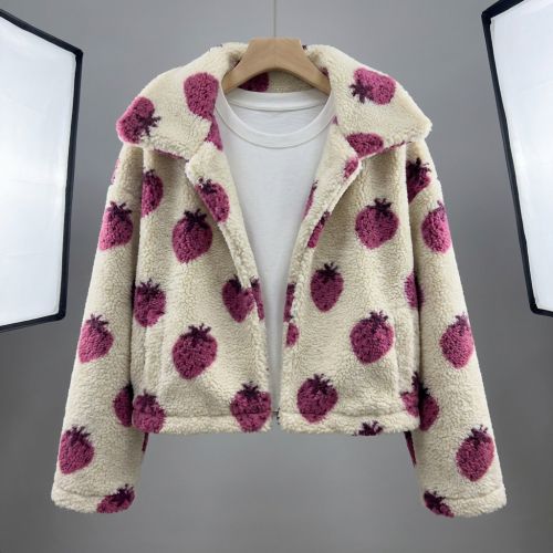 Coat fabric TEDDY JACQUARD Strawberries