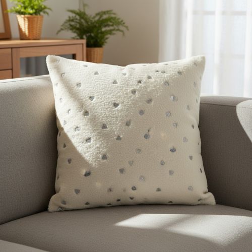 Coat fabric TEDDY Tossed hearts silver