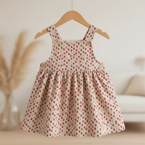Corduroy STRETCH Little strawberries light sand