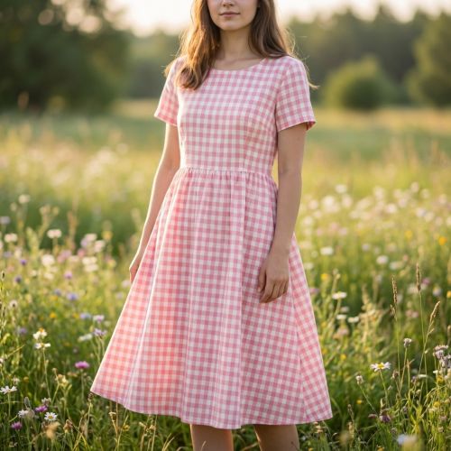 Cotton fabric Check pink