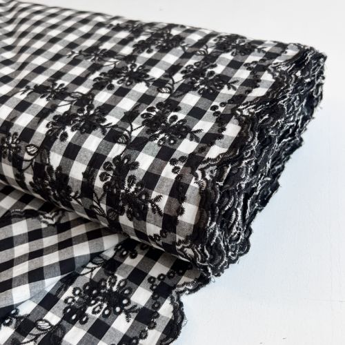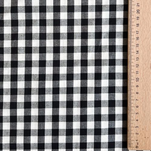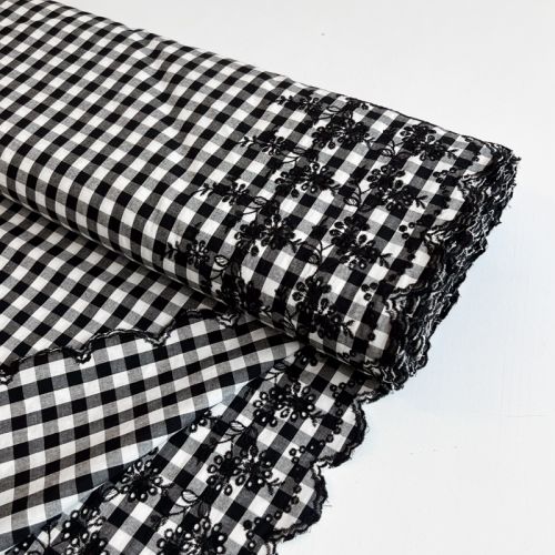 Cotton fabric Checks black white 1-side border