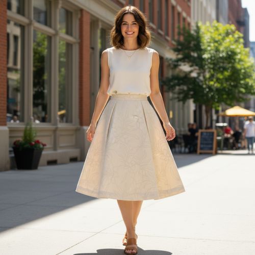 Cotton fabric EMBROIDERY GABARDINE Luana natural