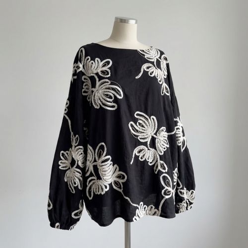 Cotton fabric EMBROIDERY Loom En Light baby blue