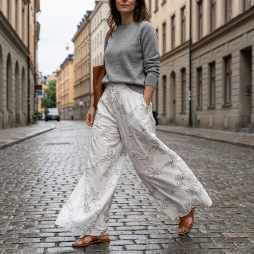 Cotton fabric EMBROIDERY Loom En Light baby blue