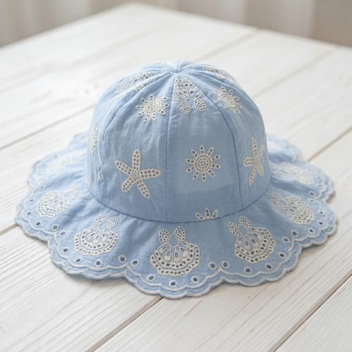 Cotton fabric EMBROIDERY Sea ornaments light blue