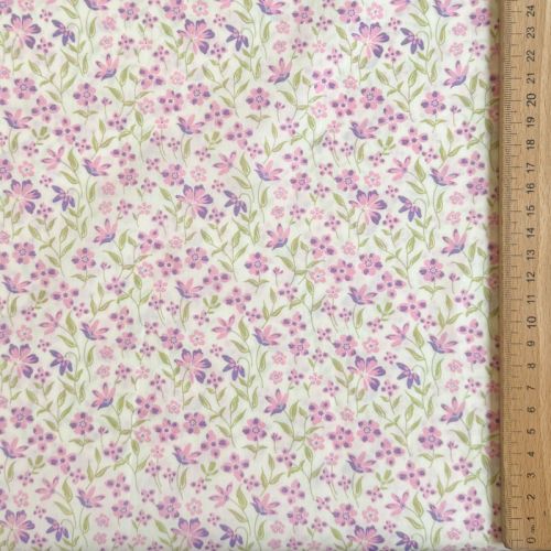 Cotton fabric Fine flowers purple