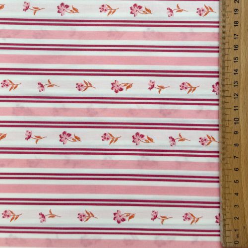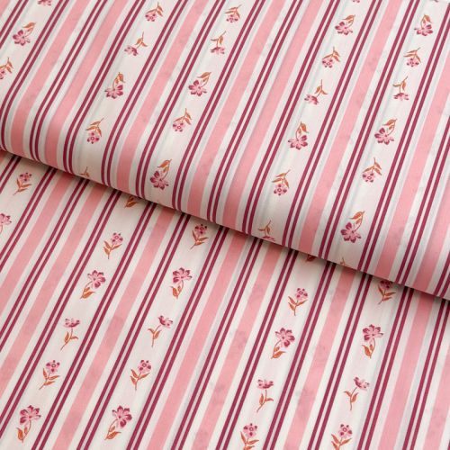 Cotton fabric Fine flowers STRIPE pink