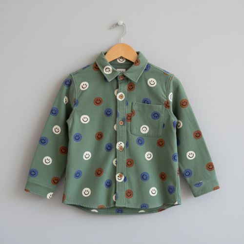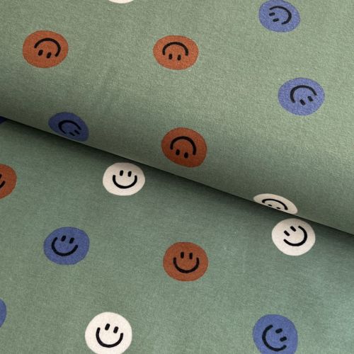 Cotton fabric FLANNEL Happy faces army green