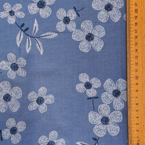 Cotton fabric JEANS Chambre LUXURY JACQUARD Flowers jeans