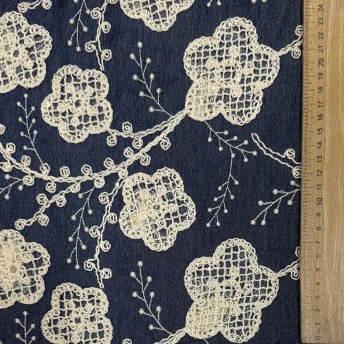 Cotton fabric JEANS EMBROIDERY Flora design C