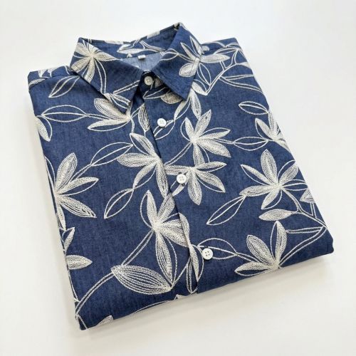 Cotton fabric JEANS Embroidery Flowers white