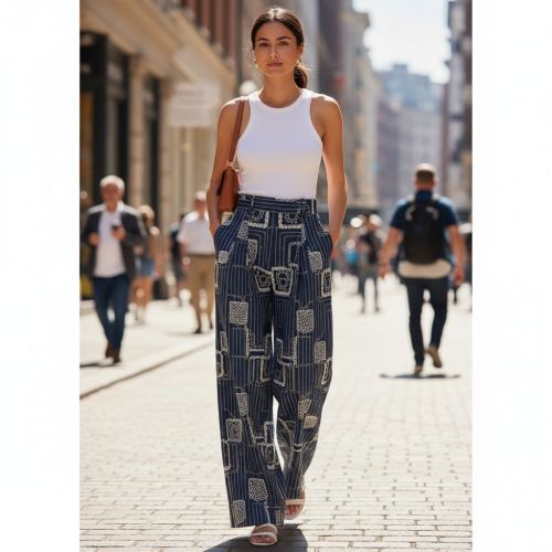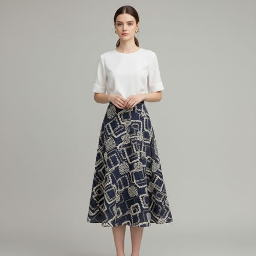 Cotton fabric JEANS EMBROIDERY Square dark blue