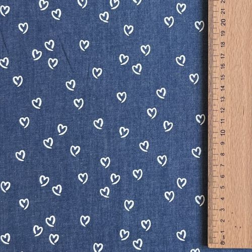 Cotton fabric JEANS Hearts