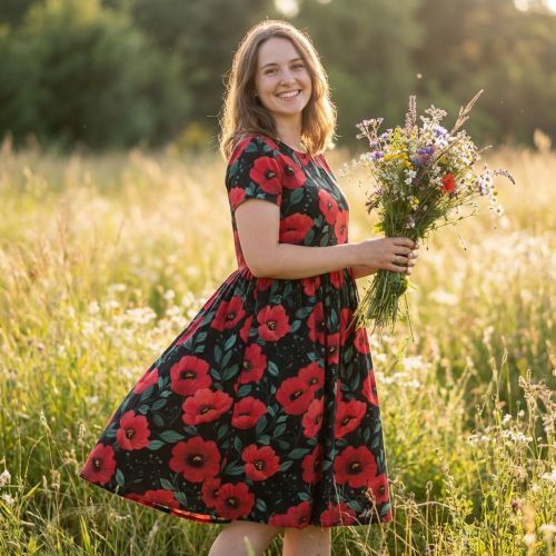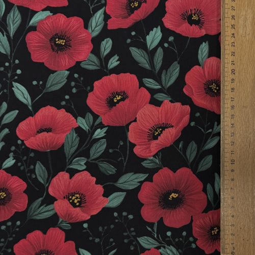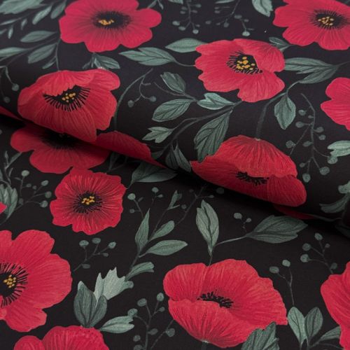 Cotton fabric Poppy black digital print