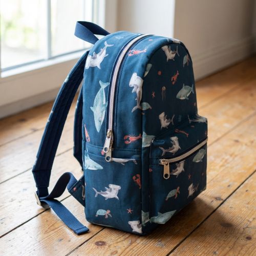 Cotton fabric Sea life petrol digital print