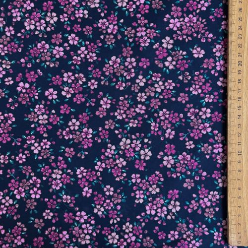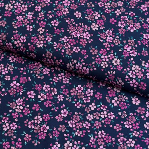 Cotton fabric Simie flowers navy digital print