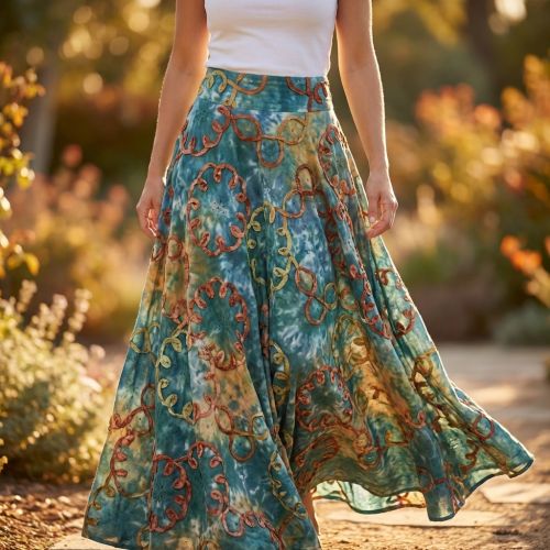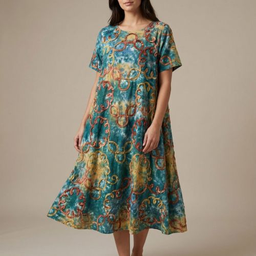 Cotton fabric TIE DYE EMBROIDERY Elise tape design E