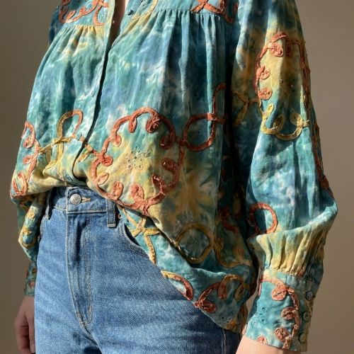 Cotton fabric TIE DYE EMBROIDERY Elise tape design A
