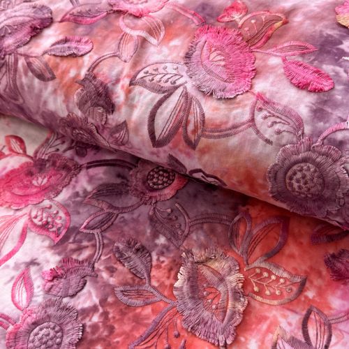 Cotton fabric TIE DYE EMBROIDERY Flora design A