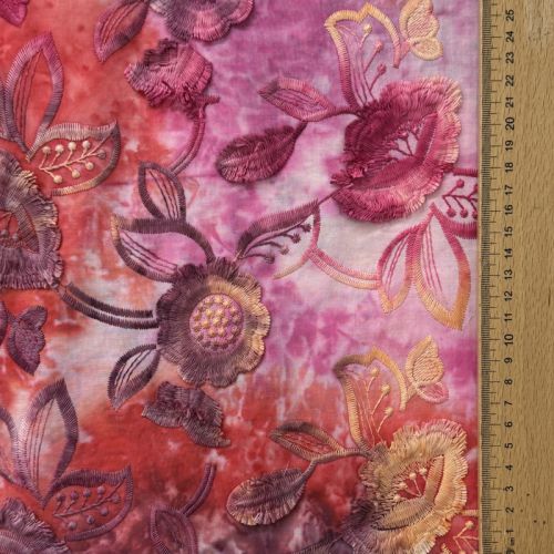 Cotton fabric TIE DYE EMBROIDERY Flora design B