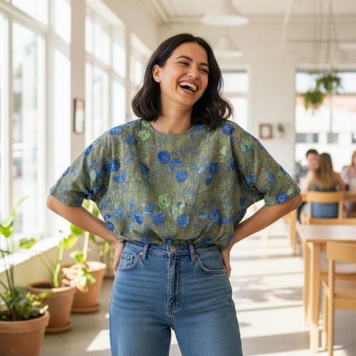 Cotton fabric TIE DYE EMBROIDERY Poppy design T