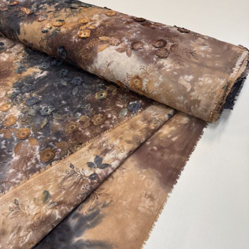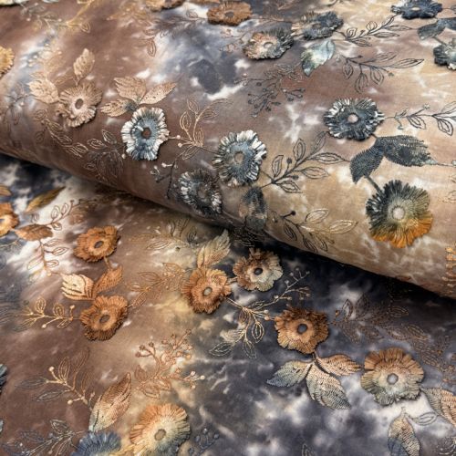 Cotton fabric TIE DYE EMBROIDERY Poppy design N