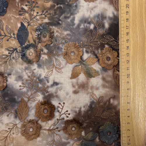 Cotton fabric TIE DYE EMBROIDERY Poppy design Q