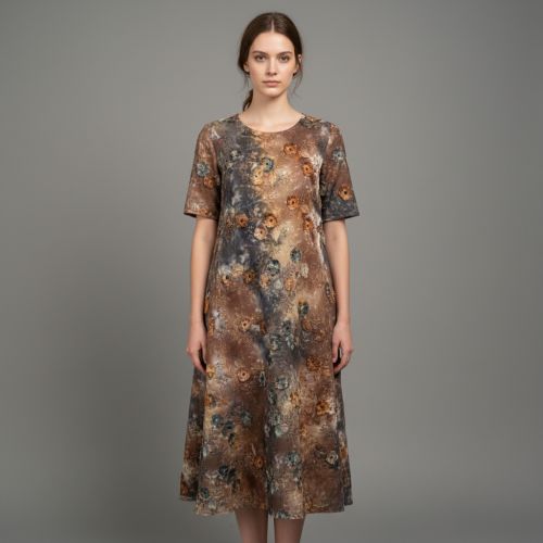 Cotton fabric TIE DYE EMBROIDERY Poppy design I
