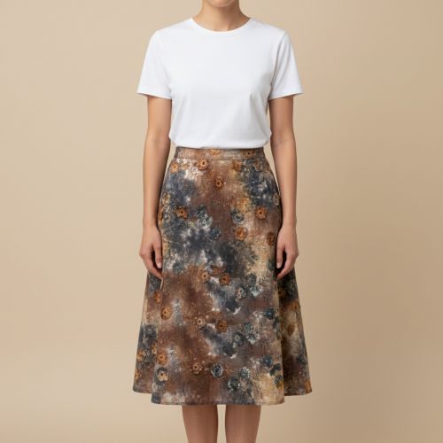 Cotton fabric TIE DYE EMBROIDERY Poppy design J