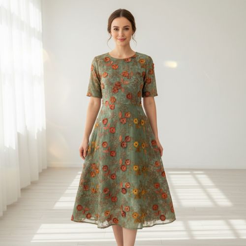 Cotton fabric TIE DYE EMBROIDERY Poppy design R