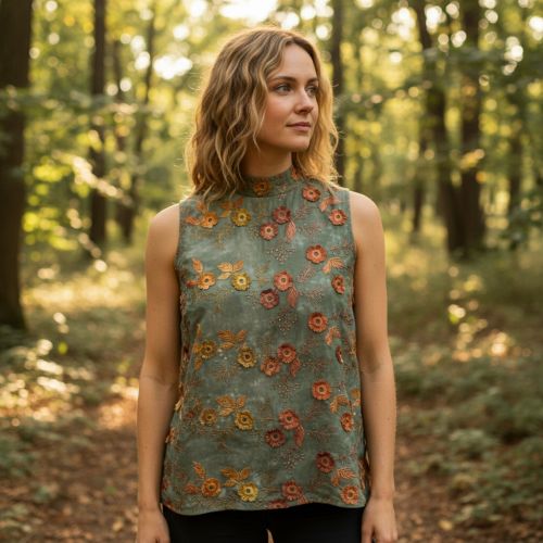 Cotton fabric TIE DYE EMBROIDERY Poppy design T