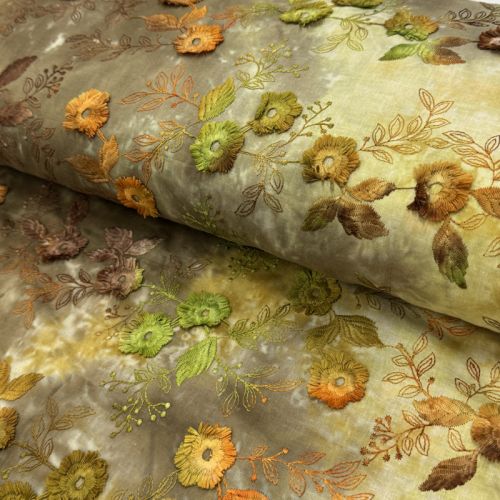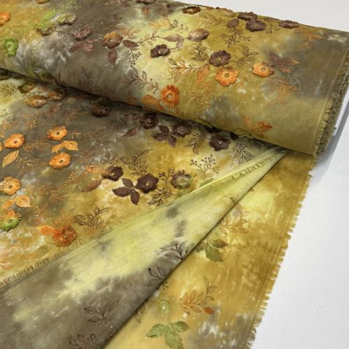 Cotton fabric TIE DYE EMBROIDERY Poppy design R