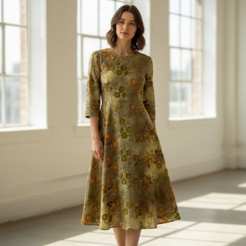 Cotton fabric TIE DYE EMBROIDERY Poppy design V