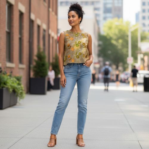 Cotton fabric TIE DYE EMBROIDERY Poppy design N