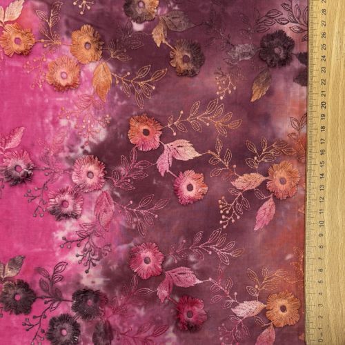 Cotton fabric TIE DYE EMBROIDERY Poppy design N