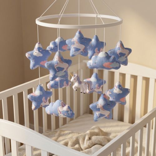 Cotton fabric Unicorns love blue