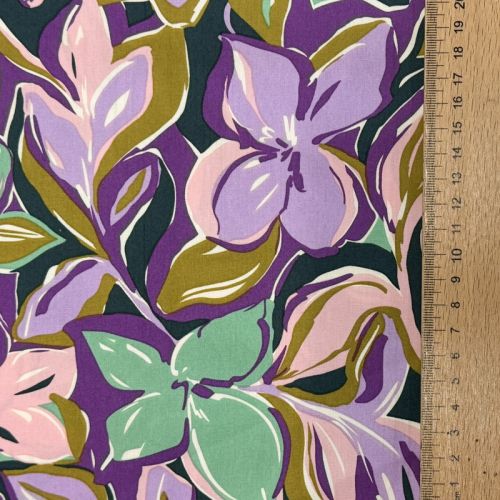 Cotton fabric VISCOSE Flowers navy digital print