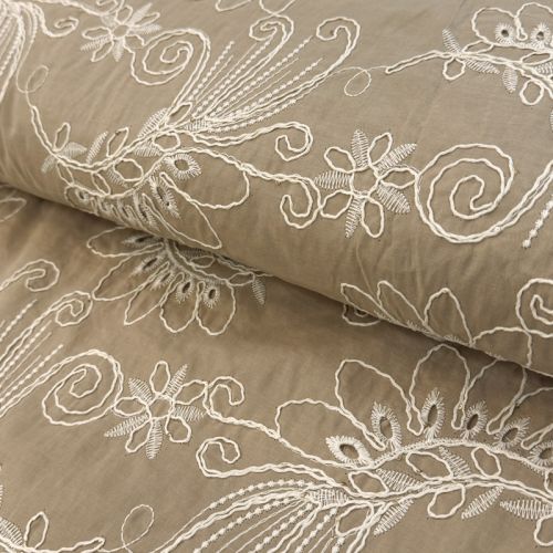 Cotton fabric VOILE EMBROIDERY Kokka natural