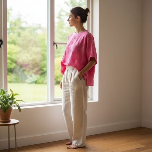 Cotton fabric VOILE EMBROIDERY Vintage fuchsia