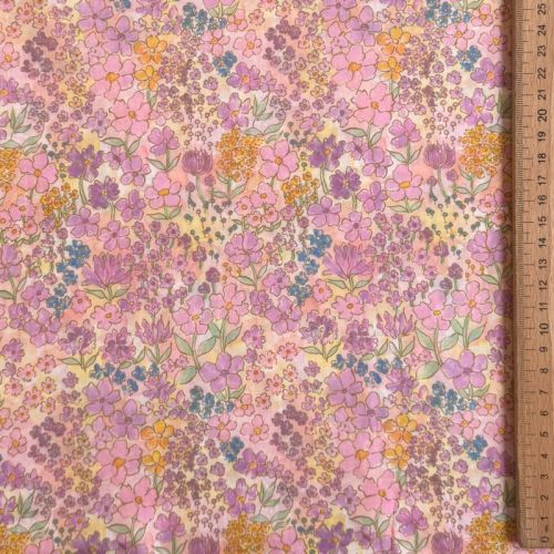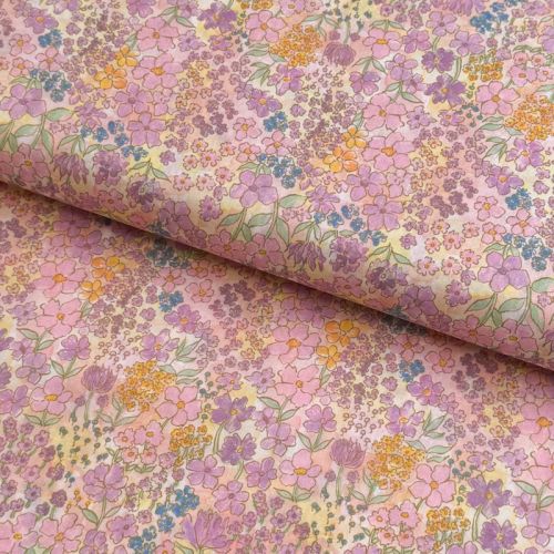 Cotton fabric VOILE Small hayppy flowers digital print