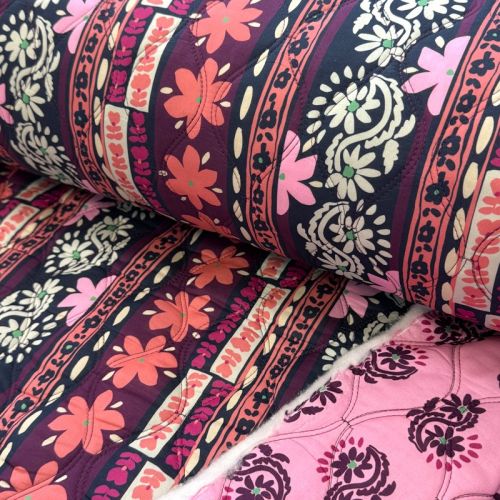 Cotton fabric VOILE STEPPED Daria flower aubergine digital print