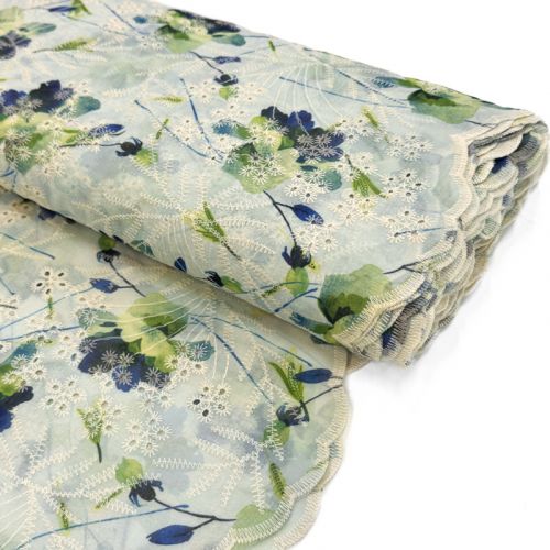 Cotton fabric with a blend EMBROIDERY Rose blue