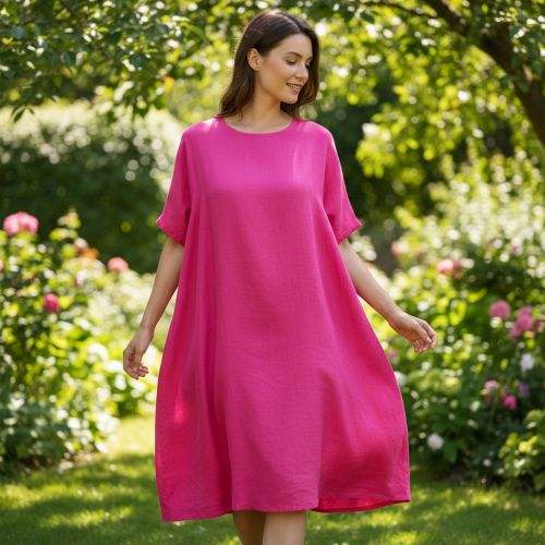 Cotton fabric with linen fuchsia