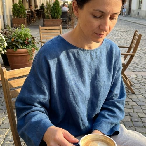 Cotton fabric with linen PREMIUM steel blue